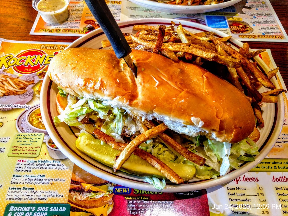 Upon stepping into Rockne's, you're greeted by a casual vibe that complements its diverse menu. Customer reviews consistently highlight standout dishes, like the incredibly generous Gyro, stuffed with meat and served alongside fresh, hot fries. The Southwest Chicken Egg Rolls have garnered rave reviews, being described as “off the charts good,” indicating an item you simply can’t miss. And for those seeking a comforting experience, the French Onion Soup and the signature Rocknes Salad come highly recommended.